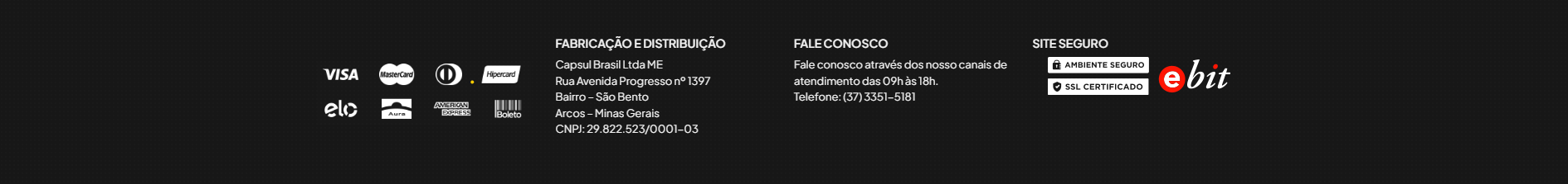 FABRICAÇÃO E DISTRIBUIÇÃO Capsul Brasil Ltda ME Rua Avenida Progresso nº 1397 Bairro – São Bento Arcos – Minas Gerais CNPJ: 29.822.523/0001-03